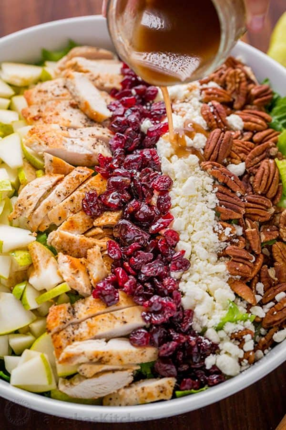 After a week of heavy soups and such, your body deserves some greens. Have a salad! This one keeps it in the fall theme and it’s delicious.